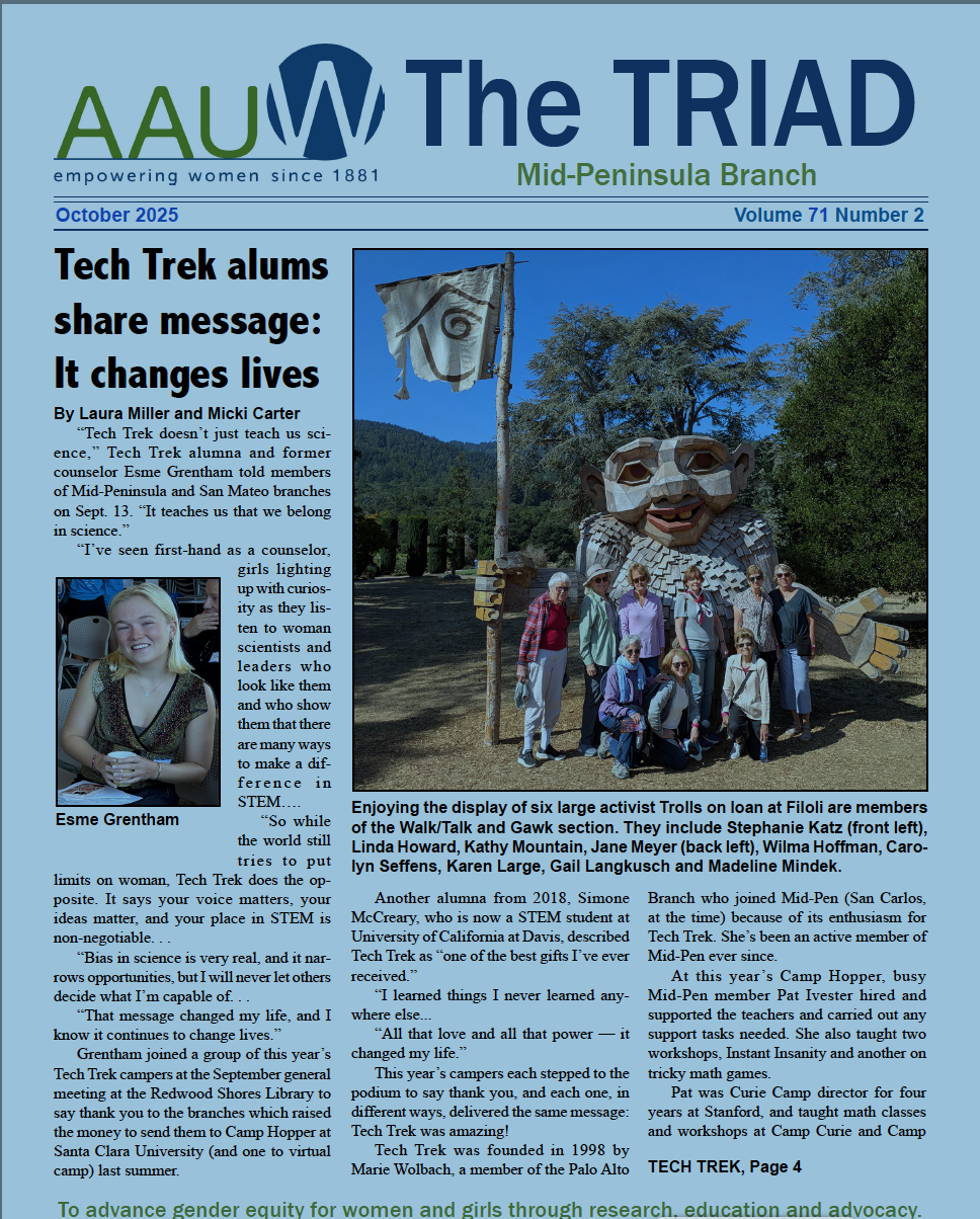 September ’25 Triad, Newsletter of the AAUW Mid-Peninsula Branch Click here for triad Sept ’25 Triad